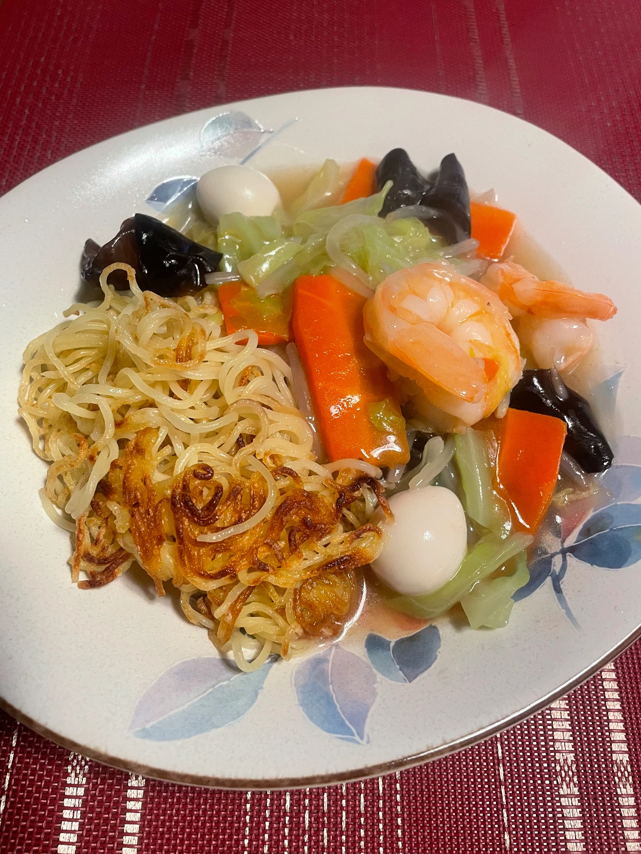 あんかけ焼きそばの焦げた所が美味しいね😋💕