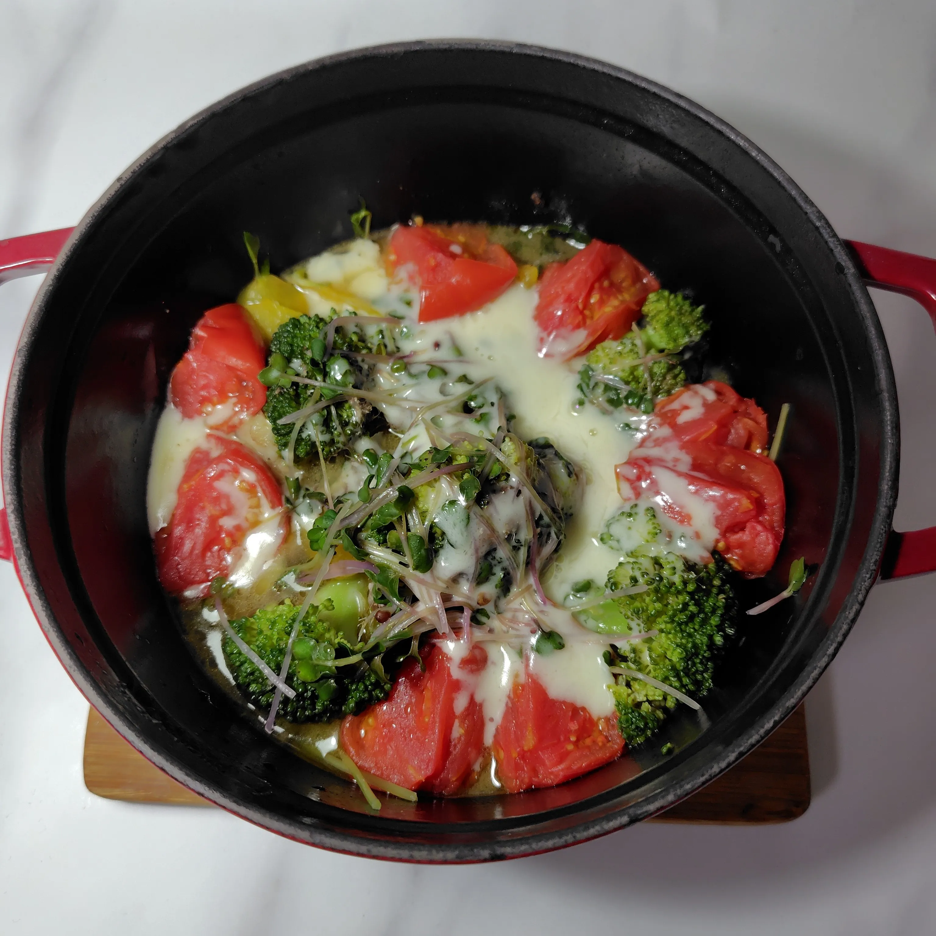 オリーブオイルを回しかけ、蒸し煮にして