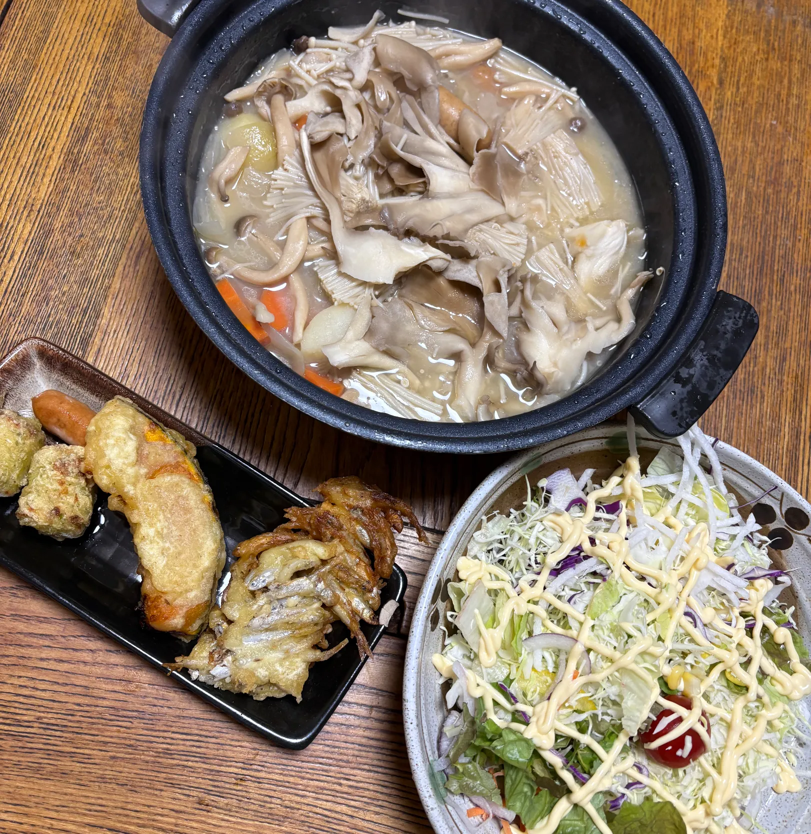 きのこのクリーム鍋と天ぷら