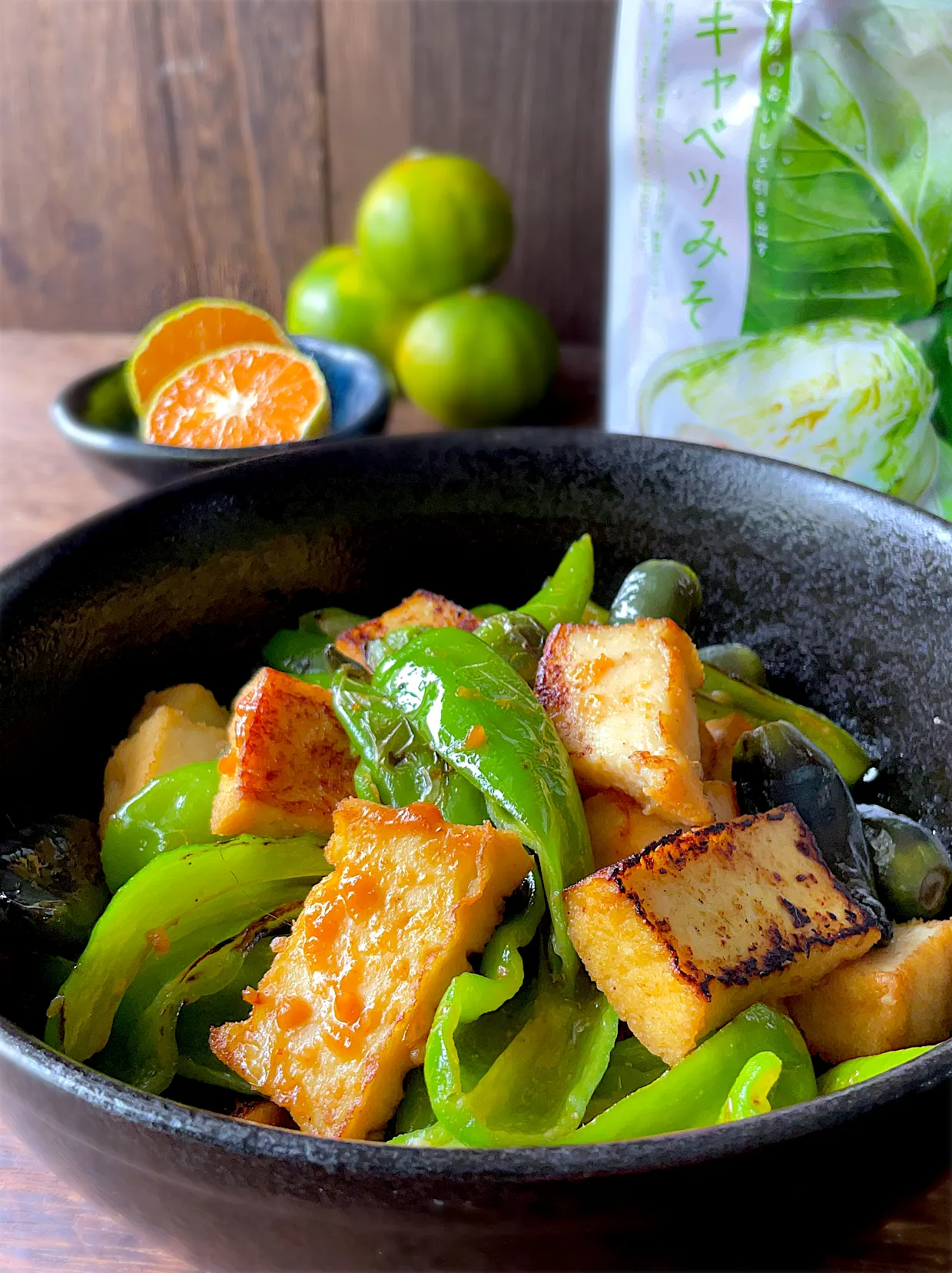 #snapdish #マルコメ #キャベツみそ #絹揚げ #ししとう #紫とうがらし #韓国ごま油 #アルモンデ