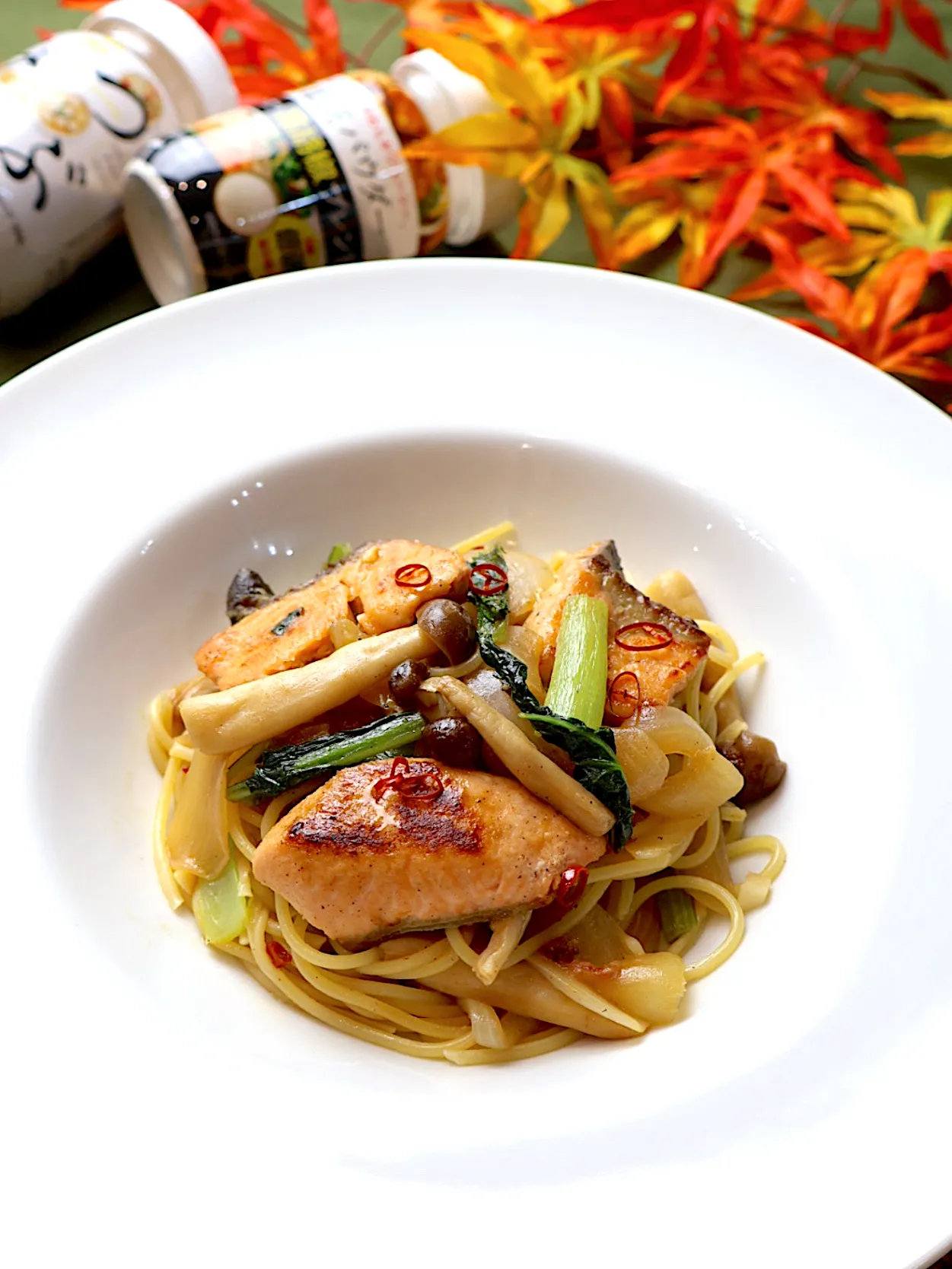 立派な秋鮭に具だくさんなパスタ😍✨