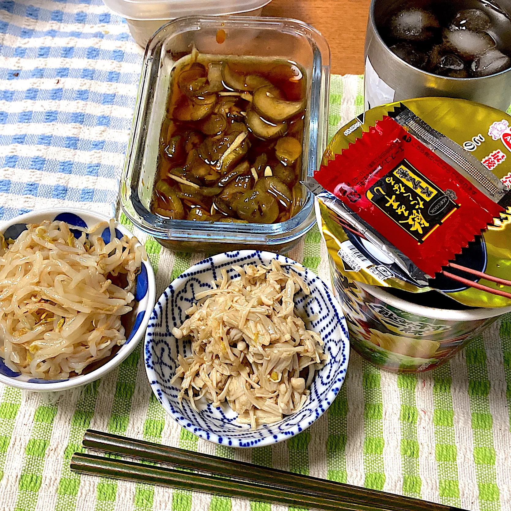 #晩ごはん #お湯入れた #もやしのナムル #えのき茸のナムル