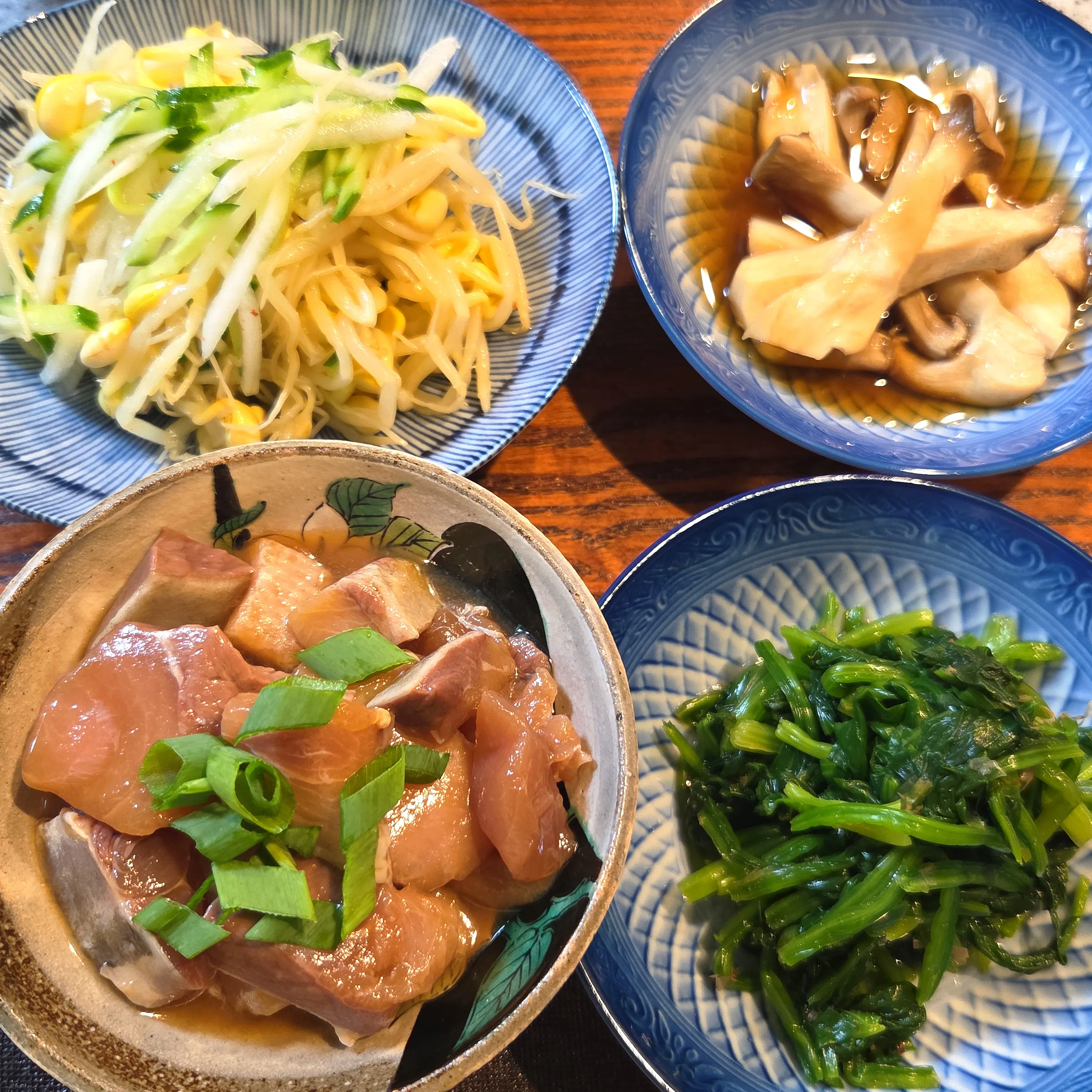 #ぶり #ほうれん草のおひたし #もやしのナムル #エリンギ
