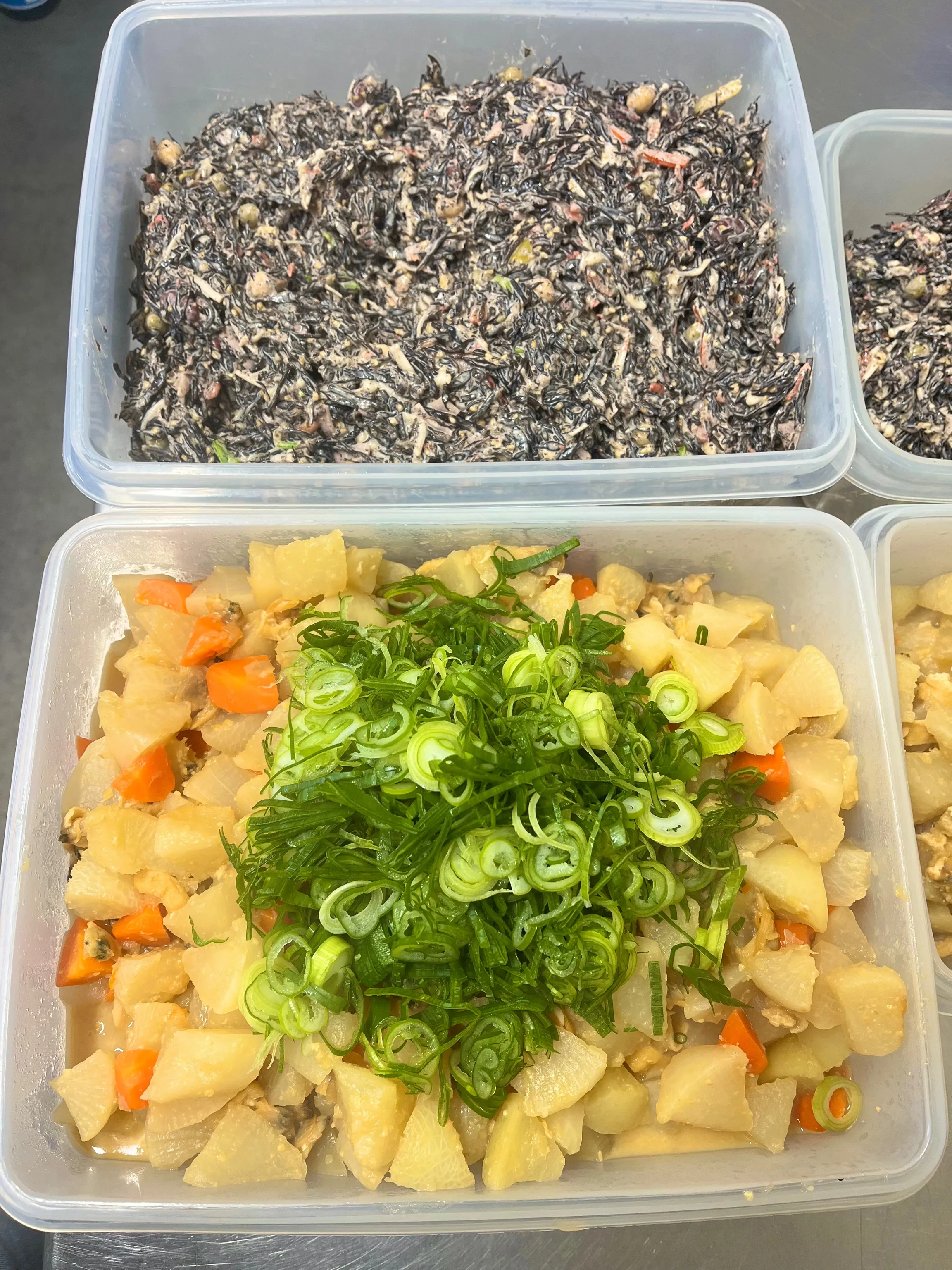 ひじき、ハム、パプリカ、絹さや、えのき、ほしえび、ミックスビーンズ、ごま