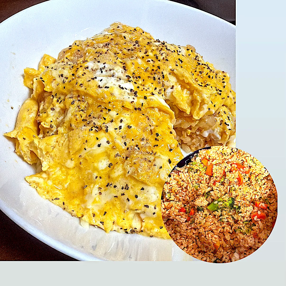 ご飯は炊飯器にお米と🥦と🥕と舞茸と鶏肉とトマトジュースと🧄とコンソメを入れて普通炊き