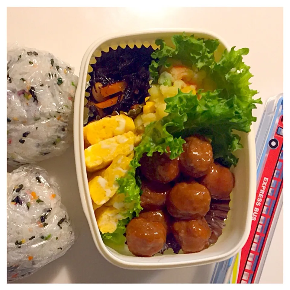 ヒガシマルたぬきむすび&ソース焼きそば♪ムスコの置き...
