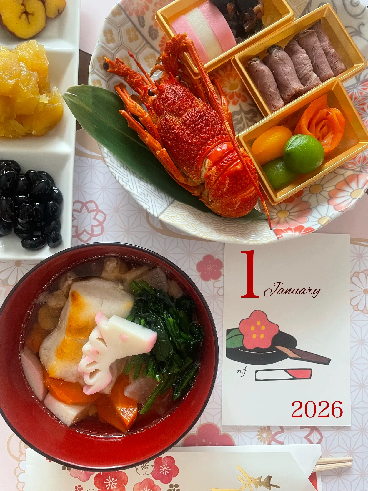 伊勢海老、豪華おせち料理😍