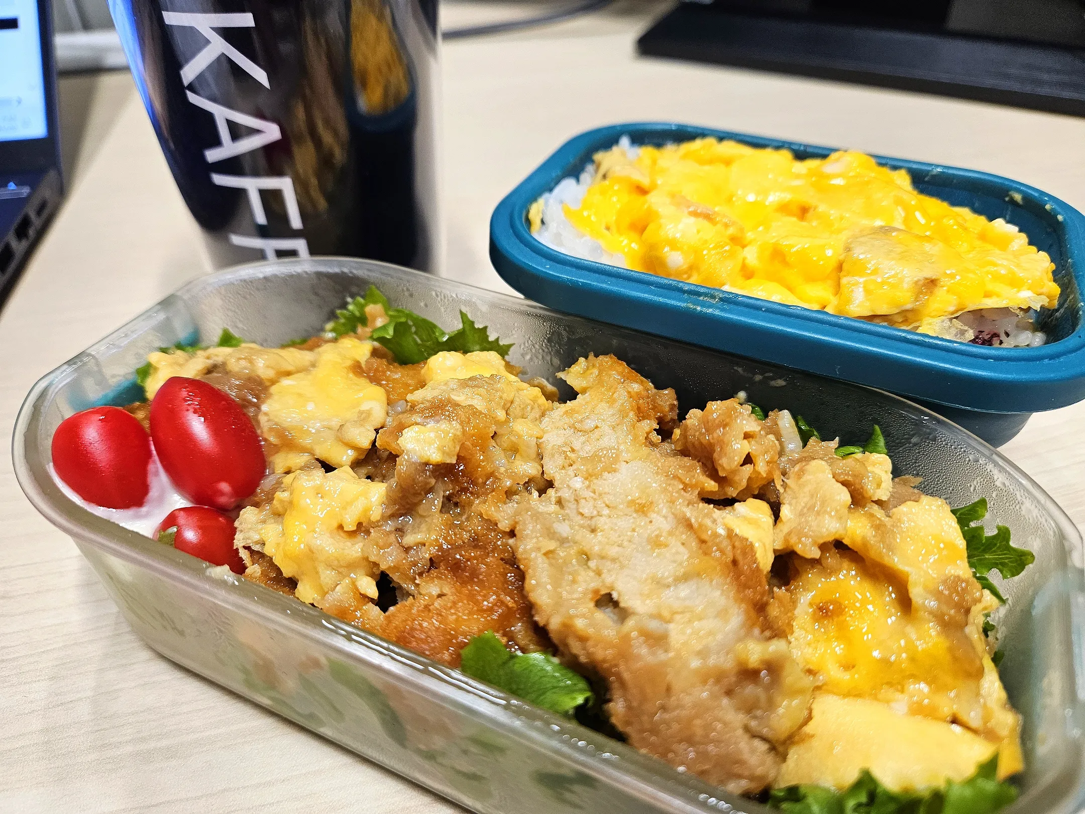 今日は昨晩食したロースカツを白だしで煮てから溶き卵をまとわらせたカツ煮弁当にしました🍱