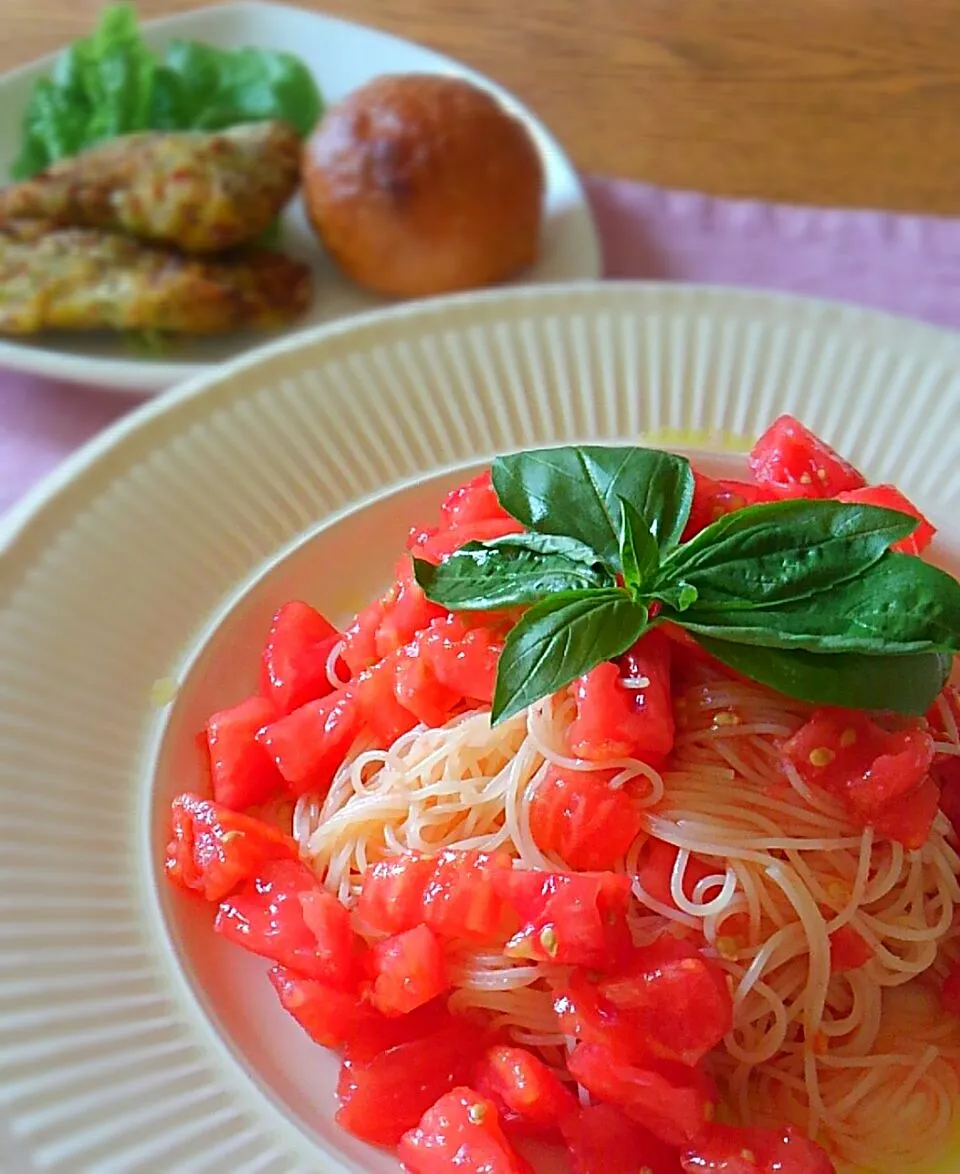 カッペリーニ使ったのに、トマトそうめん?って言われたんだけど…(´・ω・`)