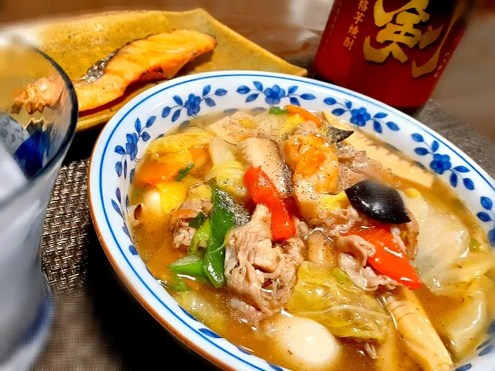 相方さんは、飲んだあとに残った八宝菜ご飯🍚に乗っけて食べてたわ😂