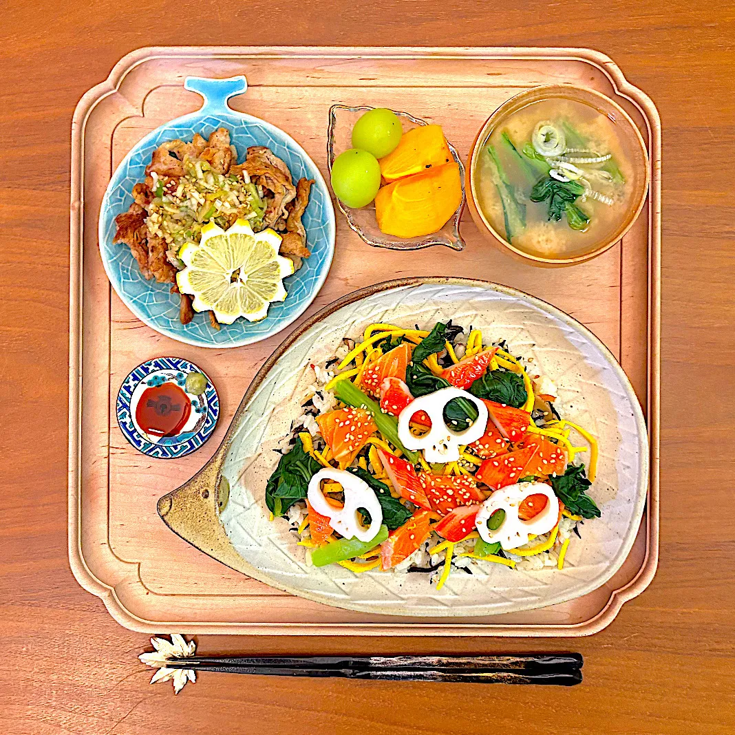 仕上げに青菜とれんこんドクロを飾って完成💀