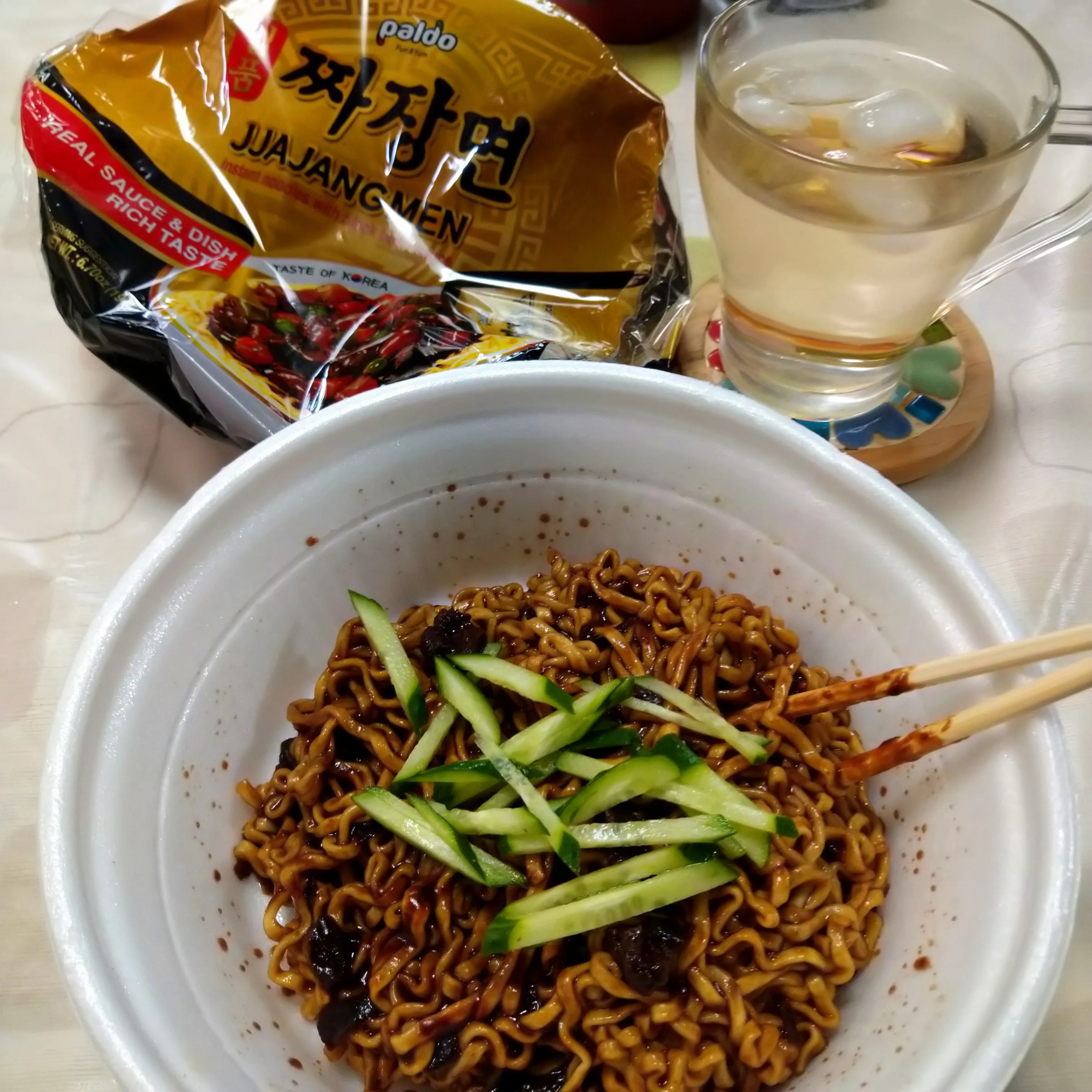 前にチャパゲティ食べて微妙で、チャジャン麺も袋麺を食べた気がするけど覚えてないので買ったら、、微妙😑