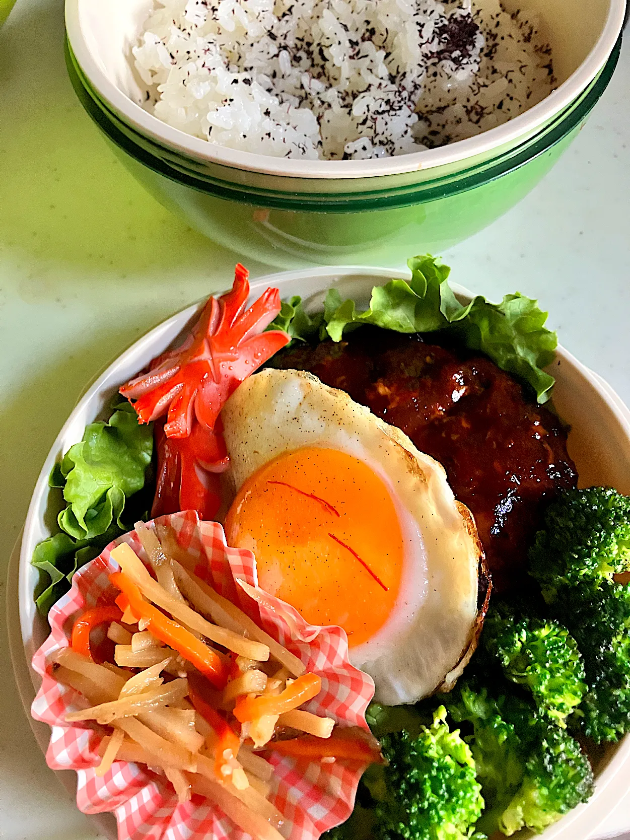 ロコモコ丼&炒り豆&チートマ&味噌汁