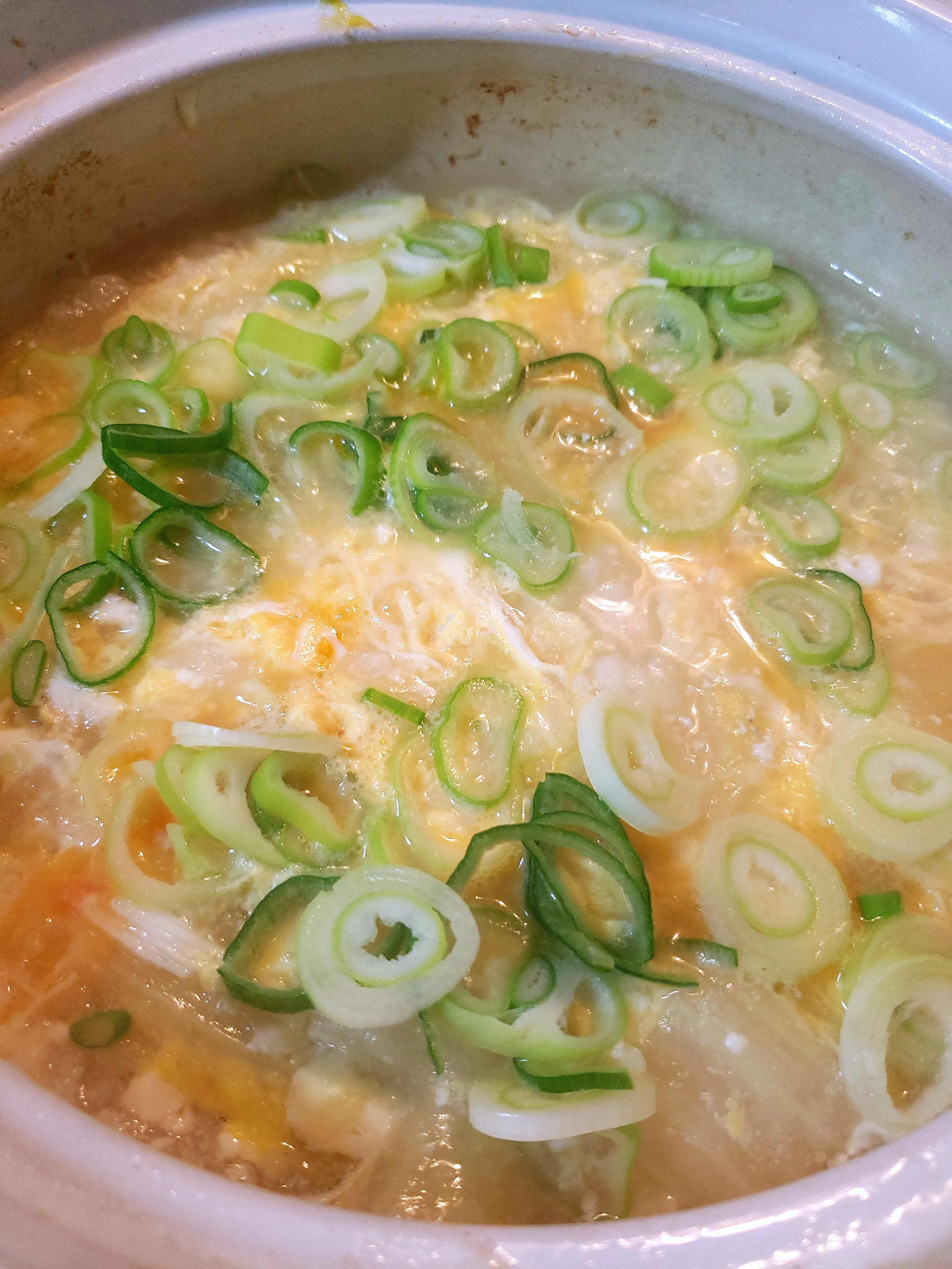 今日は、卵雑炊にしました✨蕎麦つゆで✨