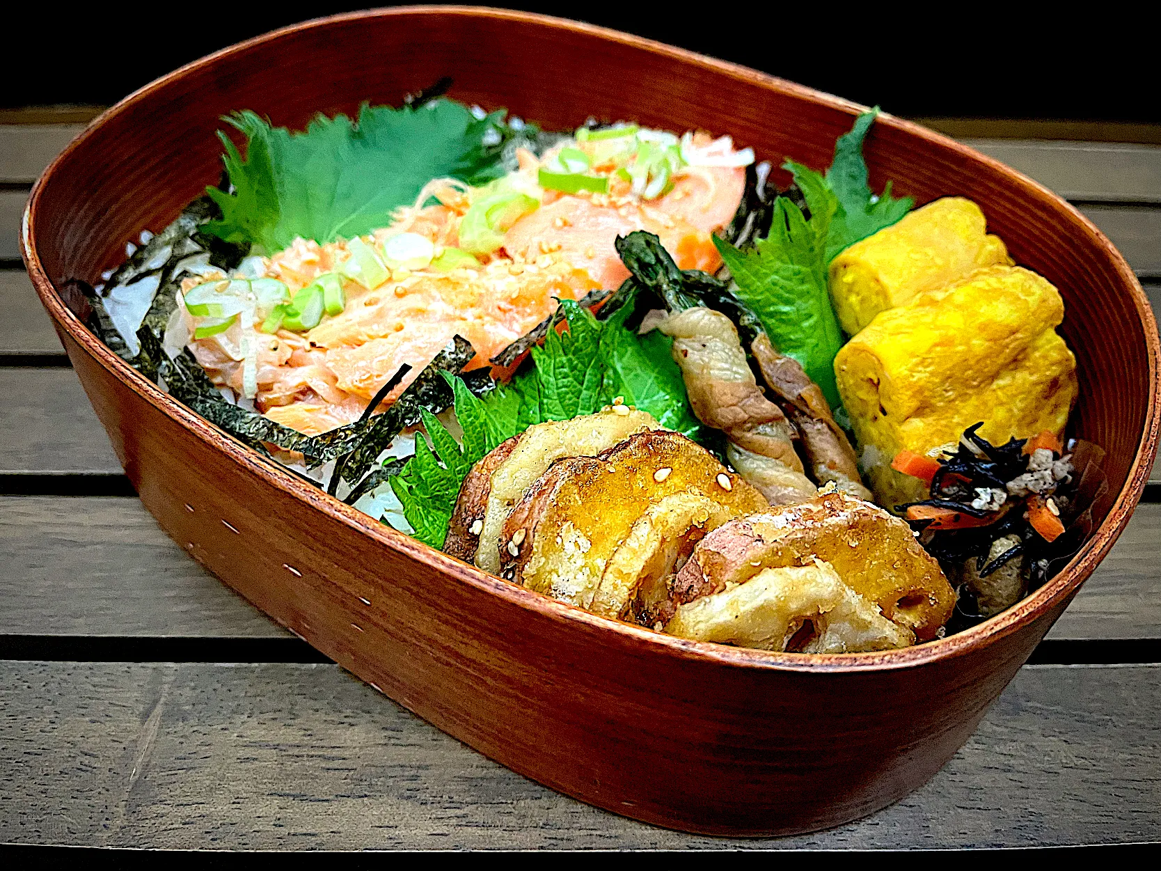 ご飯に海苔をまぶして鮭ハラミの西京焼き