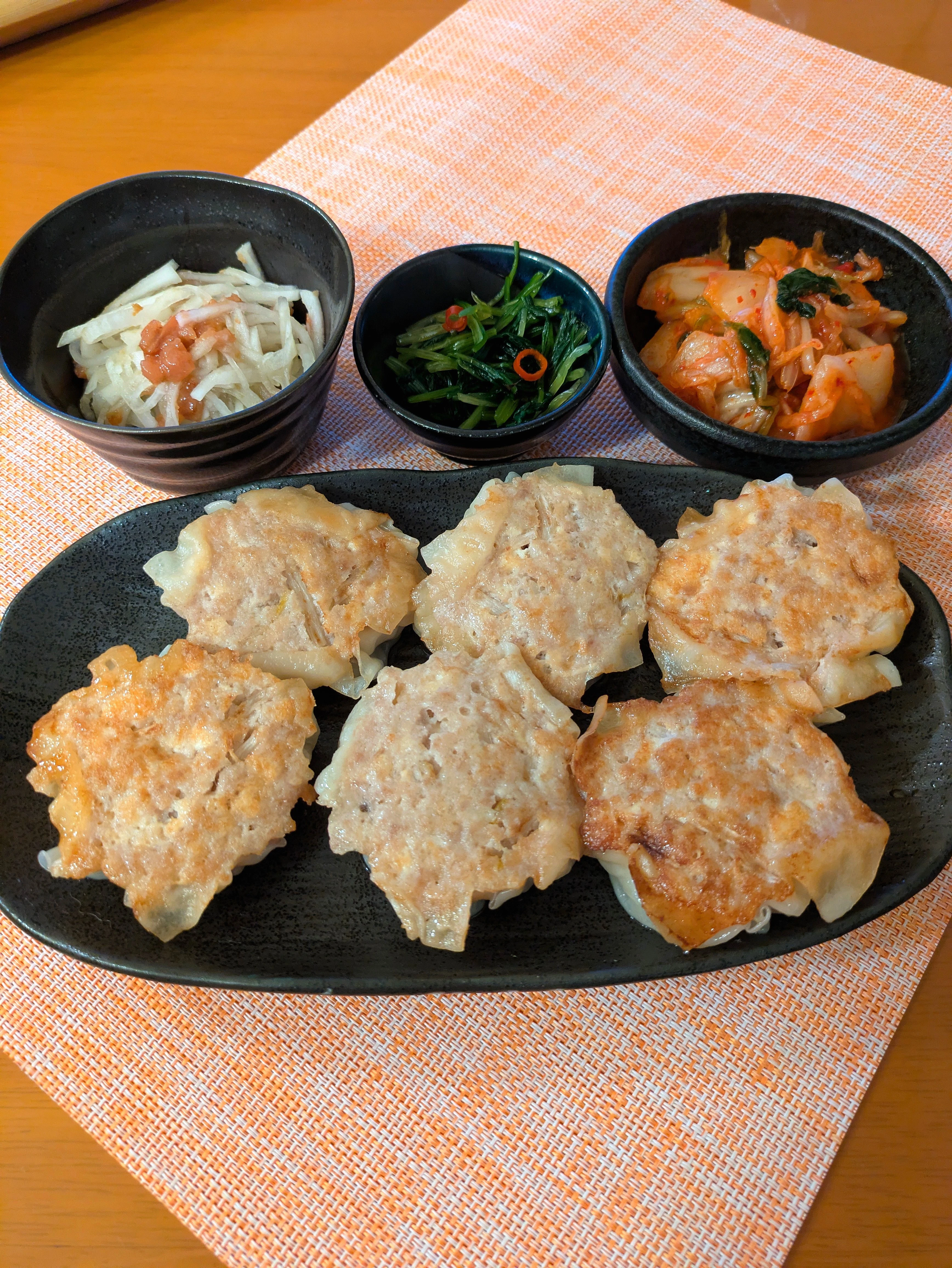 #夕食#包まないシュウマイ昆布茶和え#壬生菜漬#キムチ