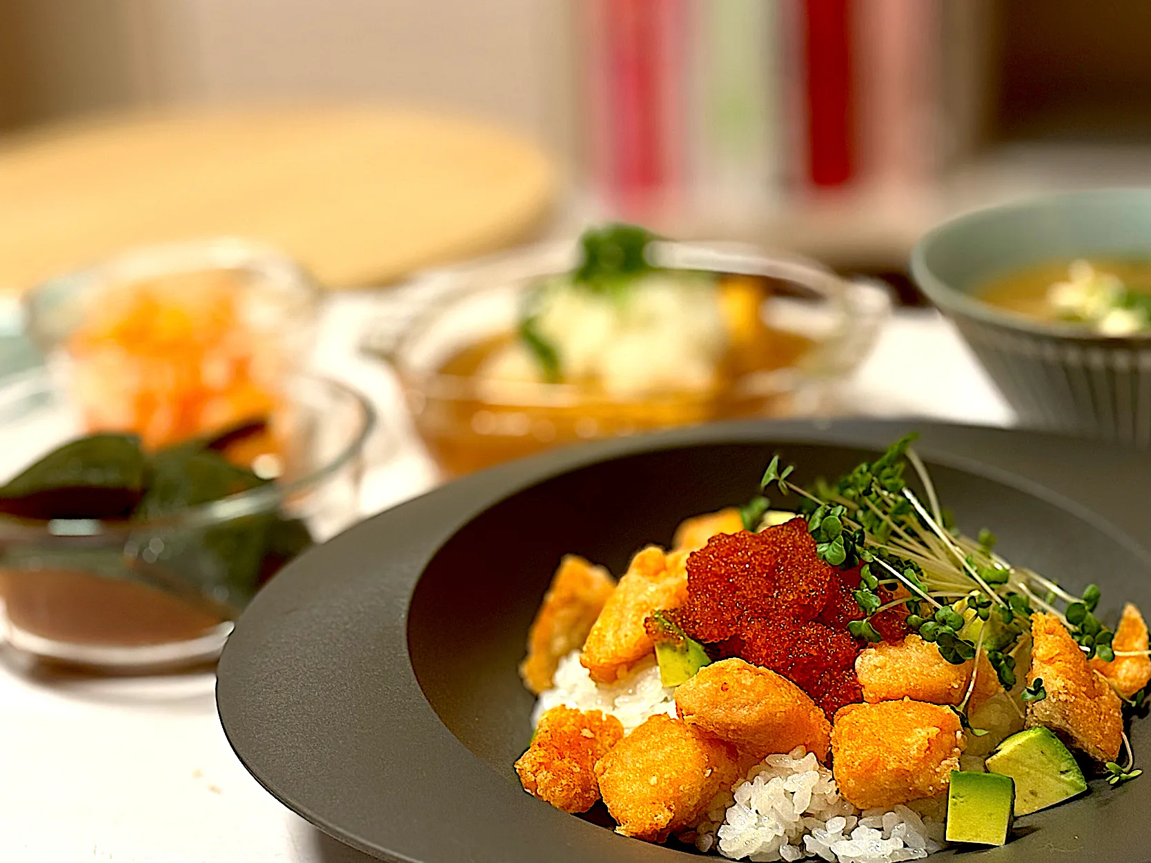 サーモンとネギトロ丼❣️さわらの西京焼き🐟