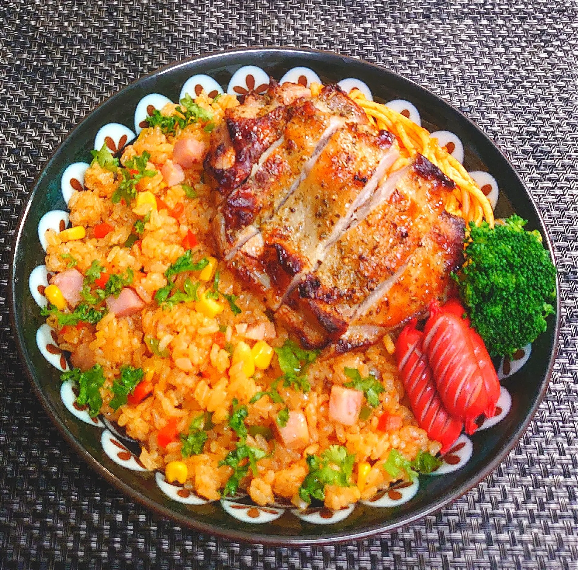 カラフルケチャップライスにグリルチキン&赤ウィンナーで息子ちゃんも冬期講習頑張れるね😆✨