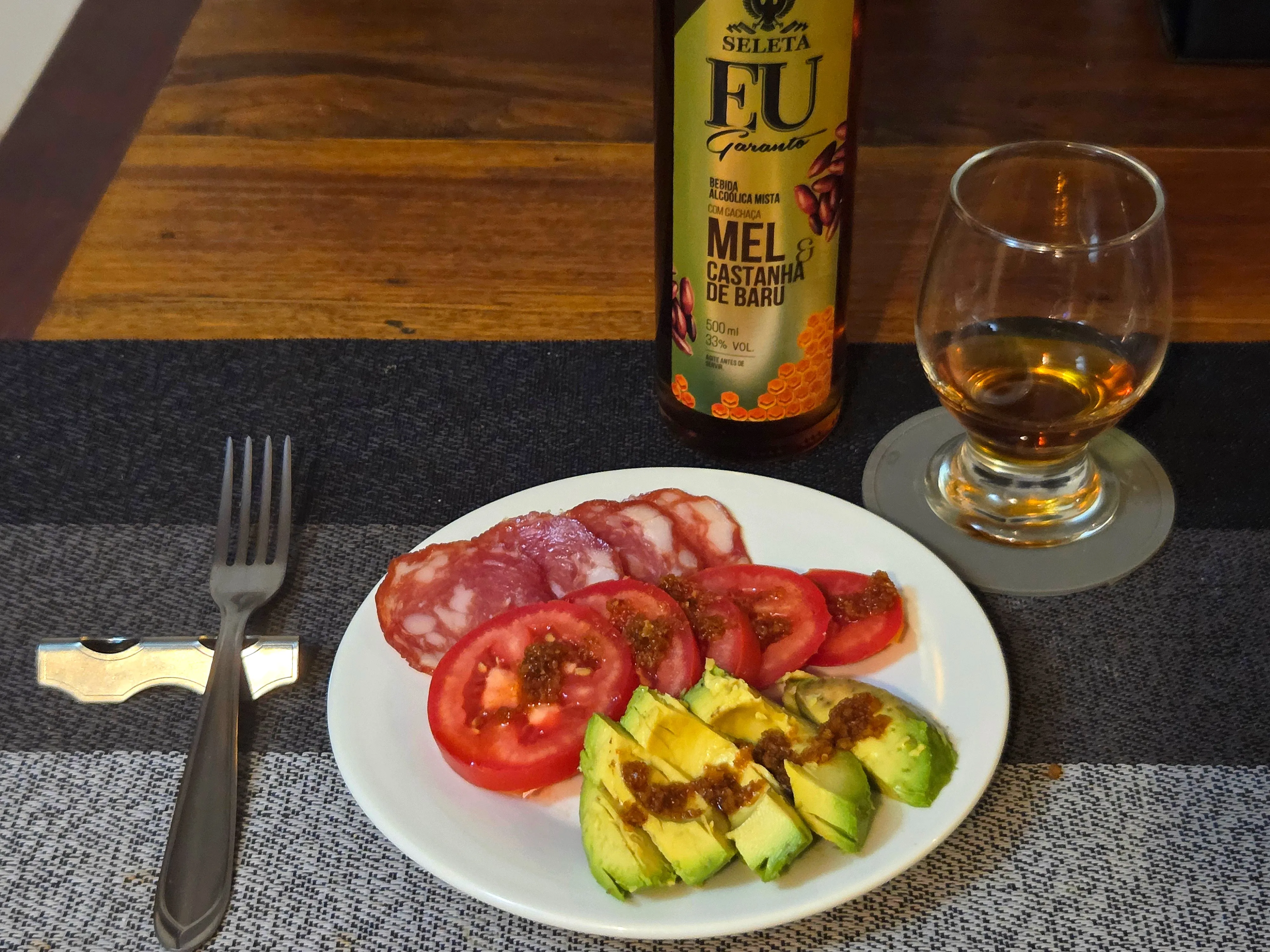 同僚からの頂き物でハチミムとカシューナッツがブレンドされたカシャーサはアルコール33%とは思えない程まろやか