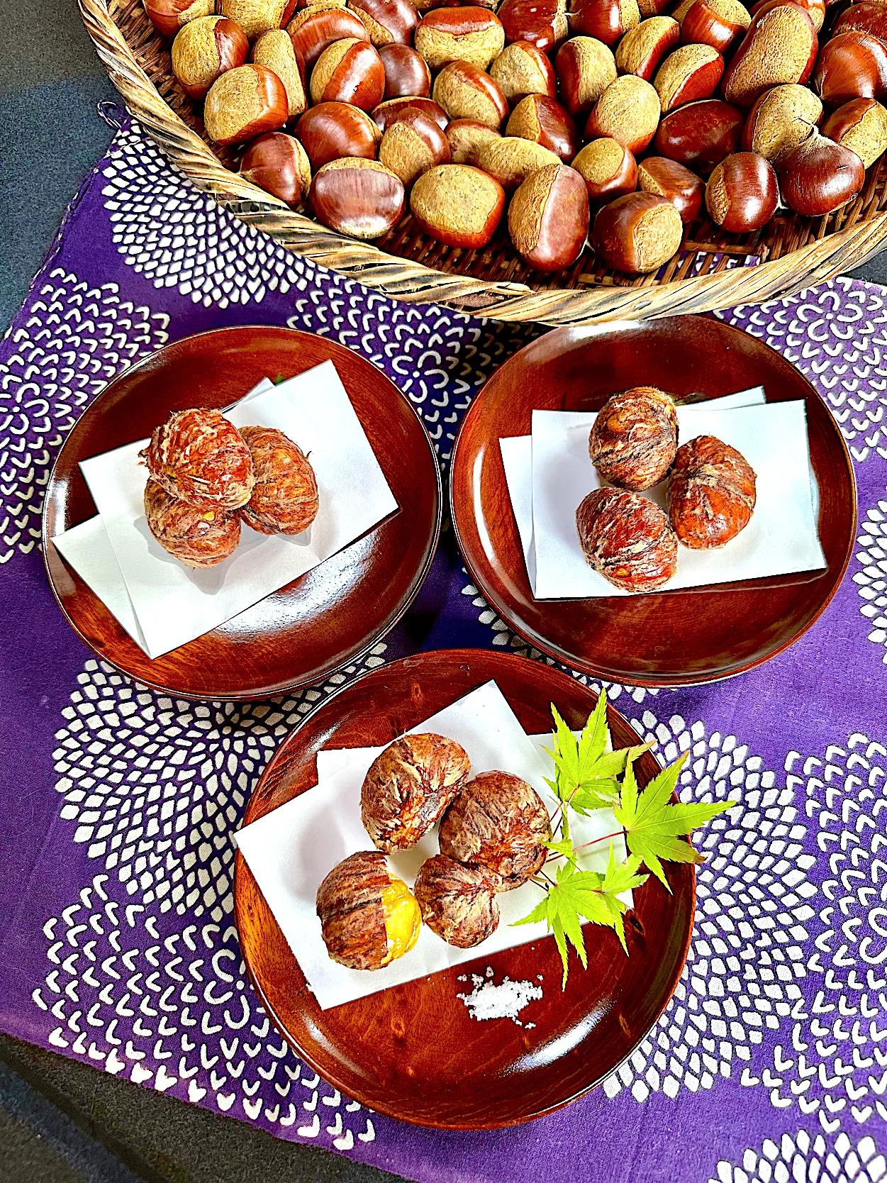 鬼皮を剥き、渋皮にして、そのまま素揚げに。