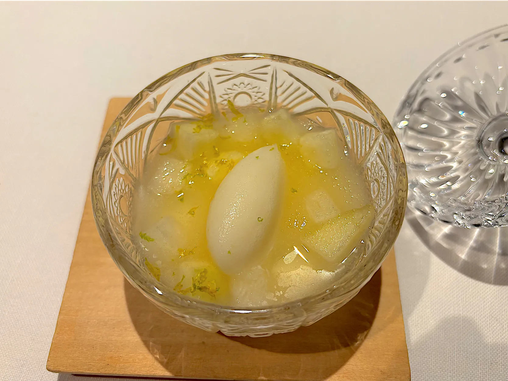 ⑧12月26日・[オープンキッチンのフレンチ🇫🇷🥰]・梨のデザート😊✨