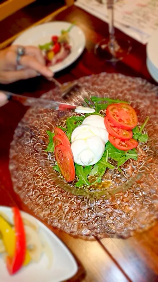 三つ編みモツァレラとめっちゃ美味しいトマト(=゚ω゚)ノ