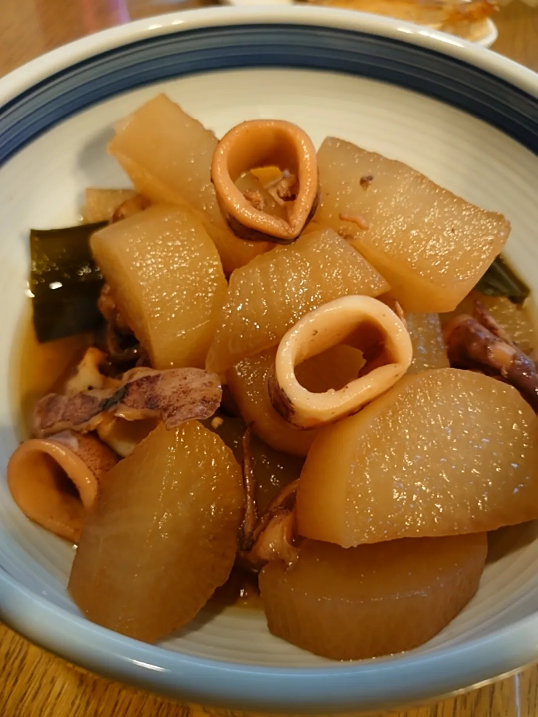 焼肉 里芋イカ煮 もやしナムル 大根葉