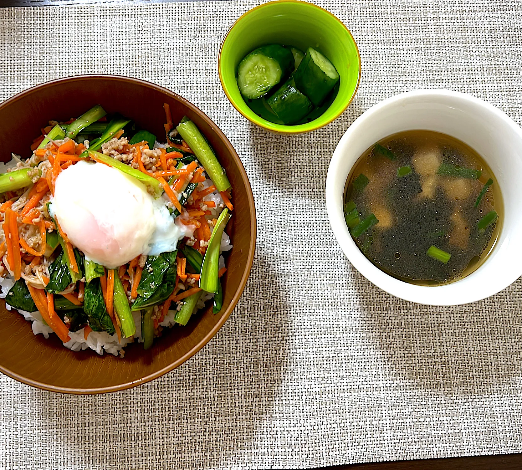 ビビンバ丼 目玉焼き🍳切り干し大根ツナ胡麻サラダ ...