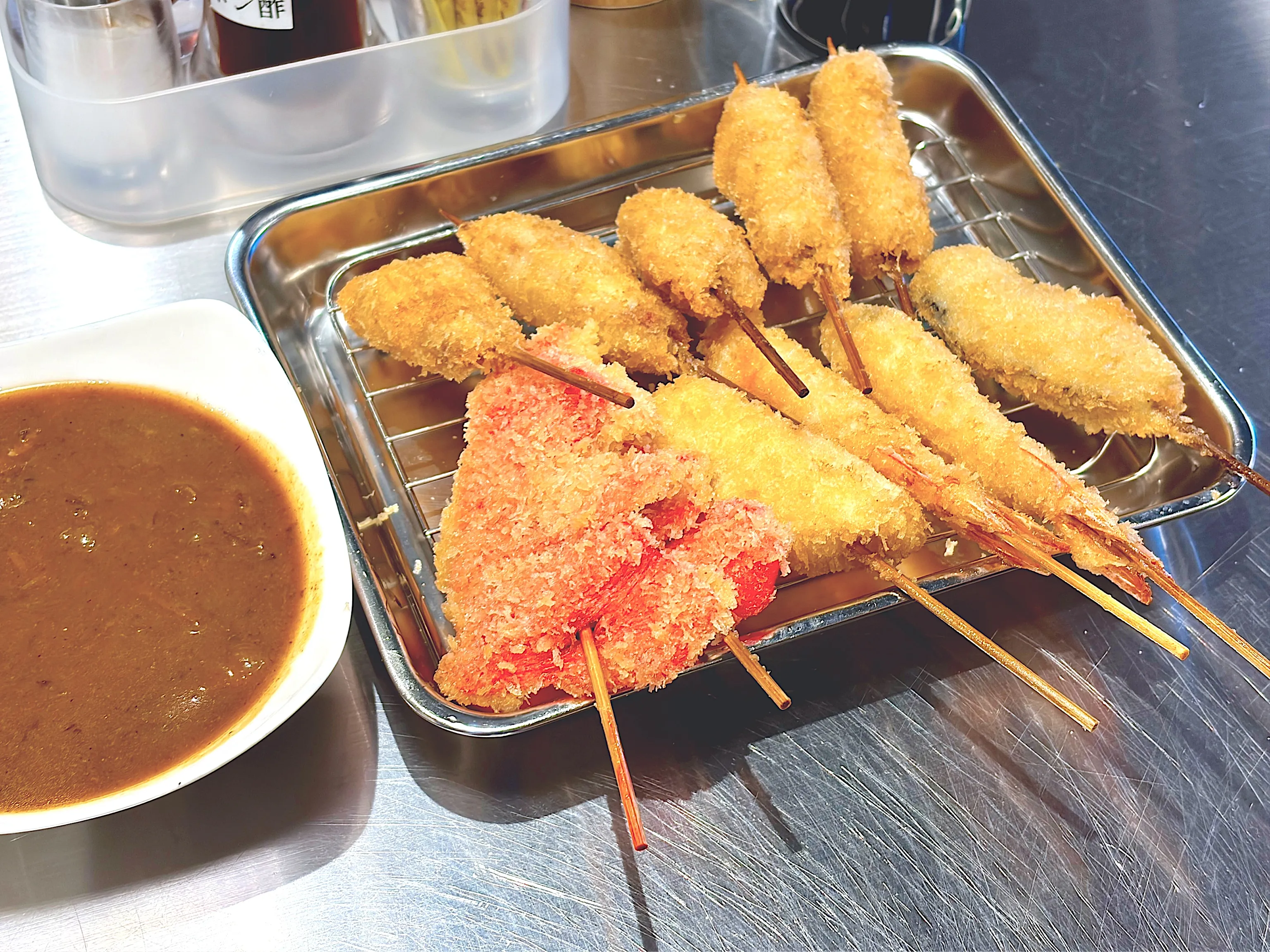私個人的には、紅しょうが細切りのかき揚げ天が好きなのですが、それは串に刺さらないからレアキャラですけどね😌