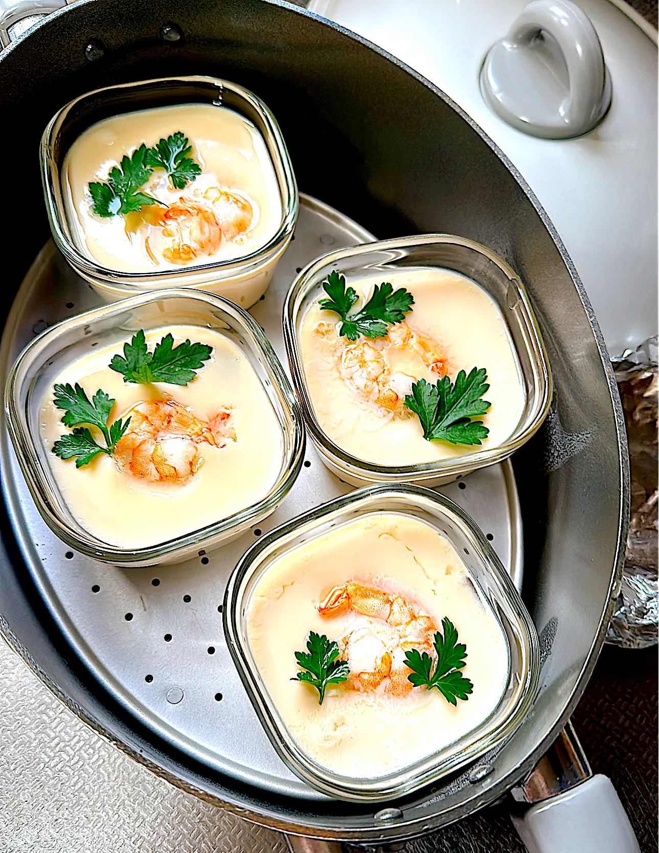 海老をのせるのを忘れててギリギリのタイミングでのっけました。三つ葉が無いからイタパセで代用。