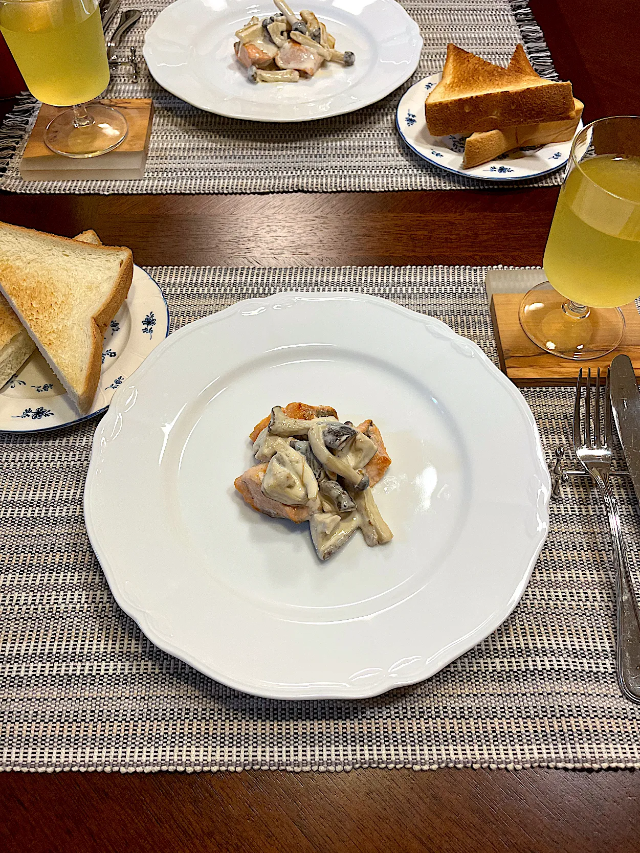 しゃけが食べたいなあと言っていたので、今日はやってみたかったクリームソテーにしてみました。手軽な材料で簡単に作れてすごく美味しい。あさつきを散らし忘れて、あとからやりましたが、あった方がさっぱりして美味しいですね。乾燥パセリでも。クリームが煮詰まるのがけっこう早かったので、様子を見ながら調整が良さそう。定番メニューに決定! #田口成子 #簡単料理 #秋の食卓