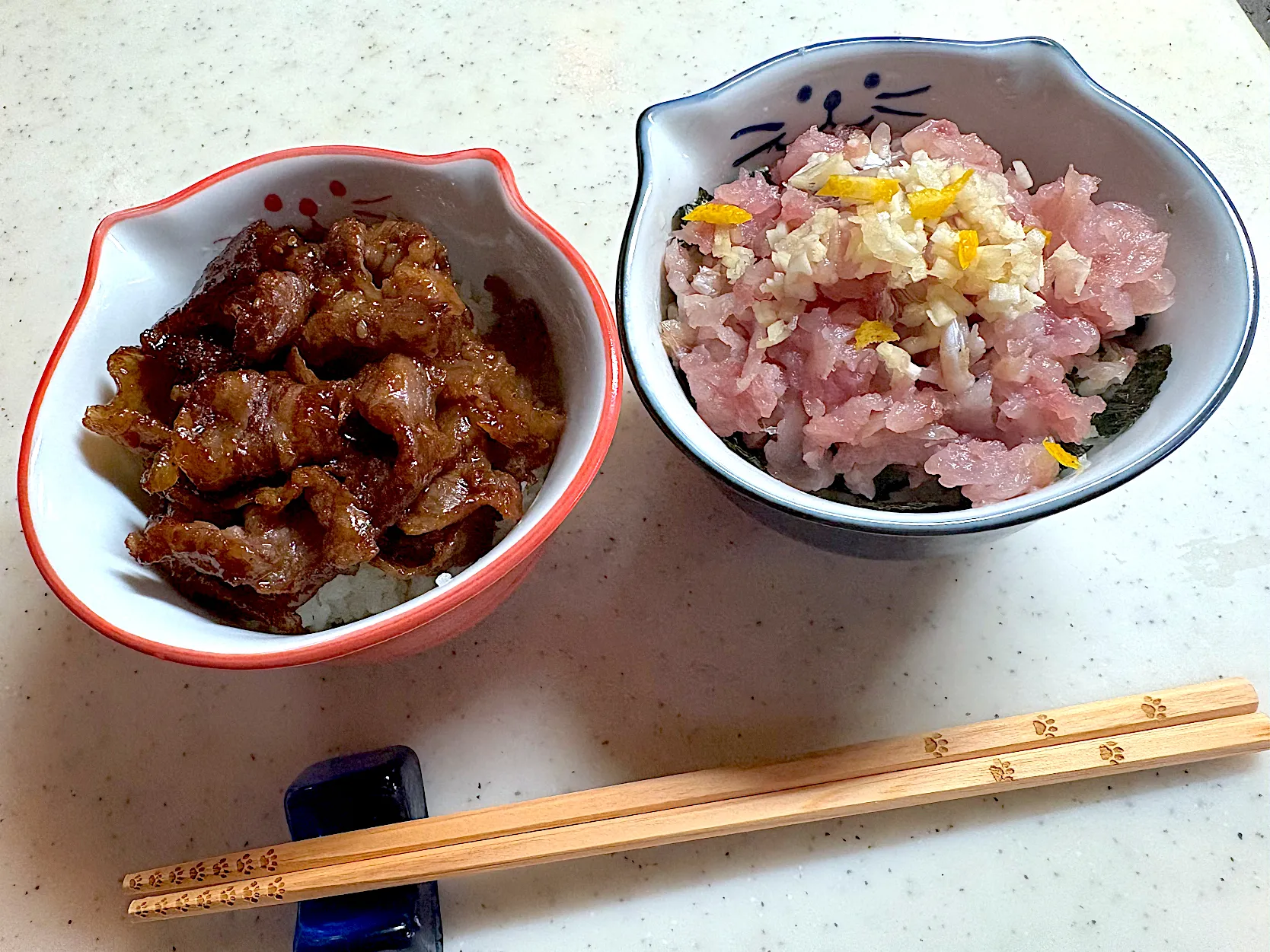 宮崎黒毛和牛焼肉丼と鯵の中落ち丼