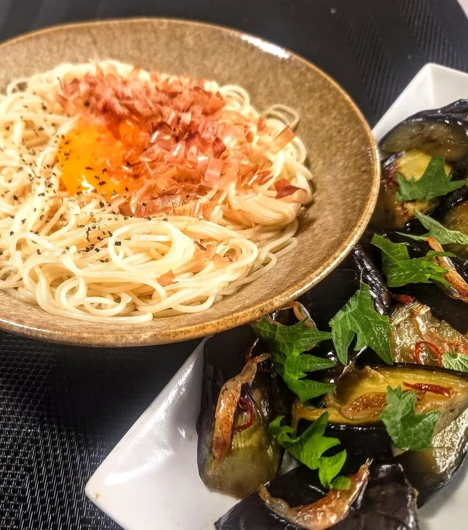 TKS(Tamago Kake Somen) なすタイ風ナンプラーおひたし