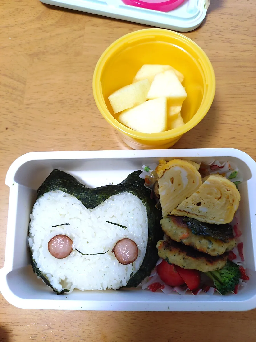 #お弁当備忘録 #学童弁当 ポケモン系のアプリを見ていて思いつきで。ネットで探したらカビゴン弁当結構あったので見様見真似で作成してみました。ホッペはウインナー輪切りで。