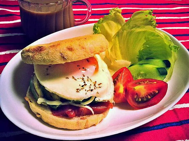 ライ麦イングリッシュマフィンのアボカド月見サンド♪♪