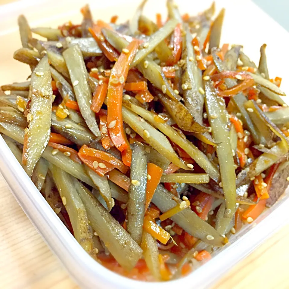 今回はごぼう太めにカットしましたょ〜💞きんぴらごぼう🎵