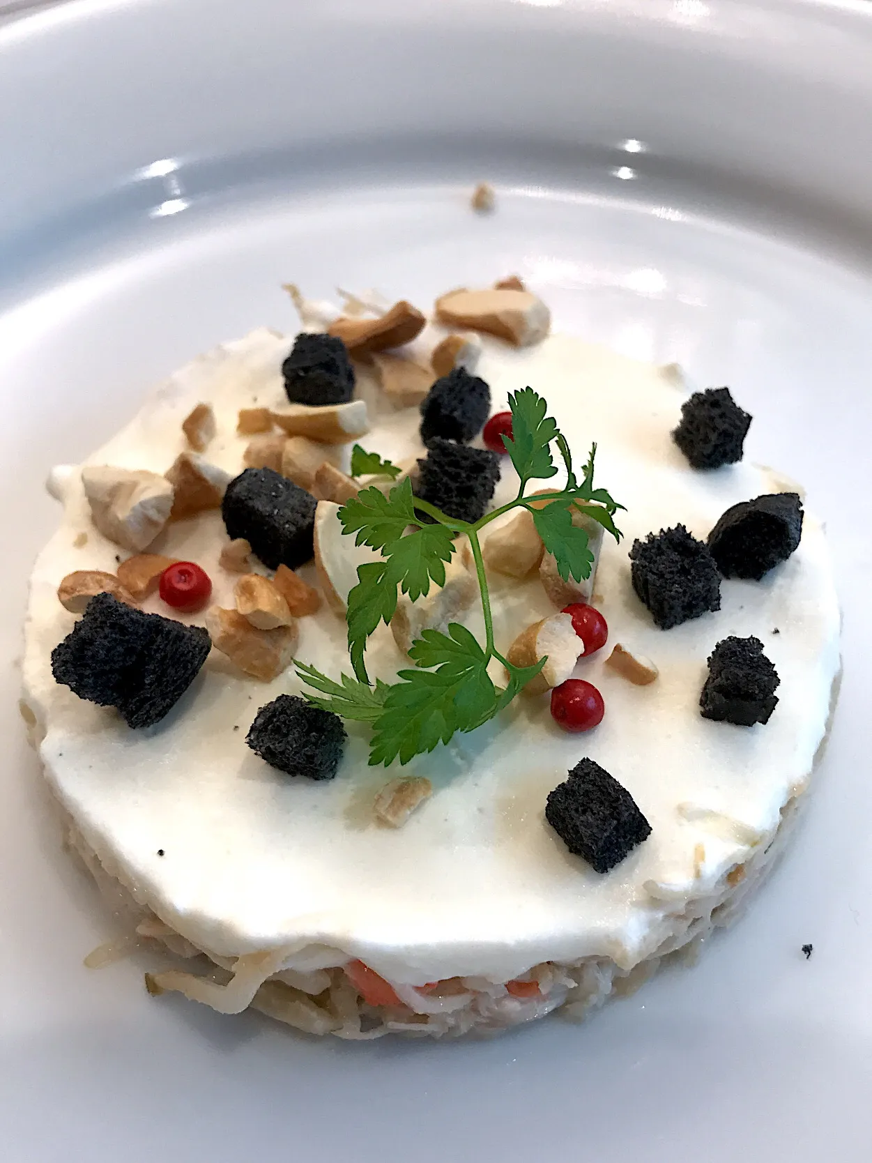 紅ズワイ蟹と根セロリとりんごのサラダ レムラードソース