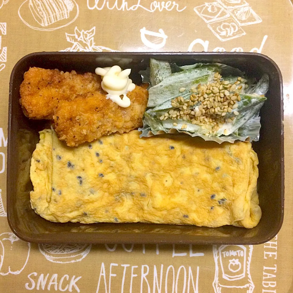 黒ごま卵焼き、オクラマヨ和え、骨なしチキンボー、毎日同じ様なお弁当だけど作り置きで楽チン٩( 'ω' )و卵焼きのフレーバーを毎日楽しんでます\( ˆoˆ )/