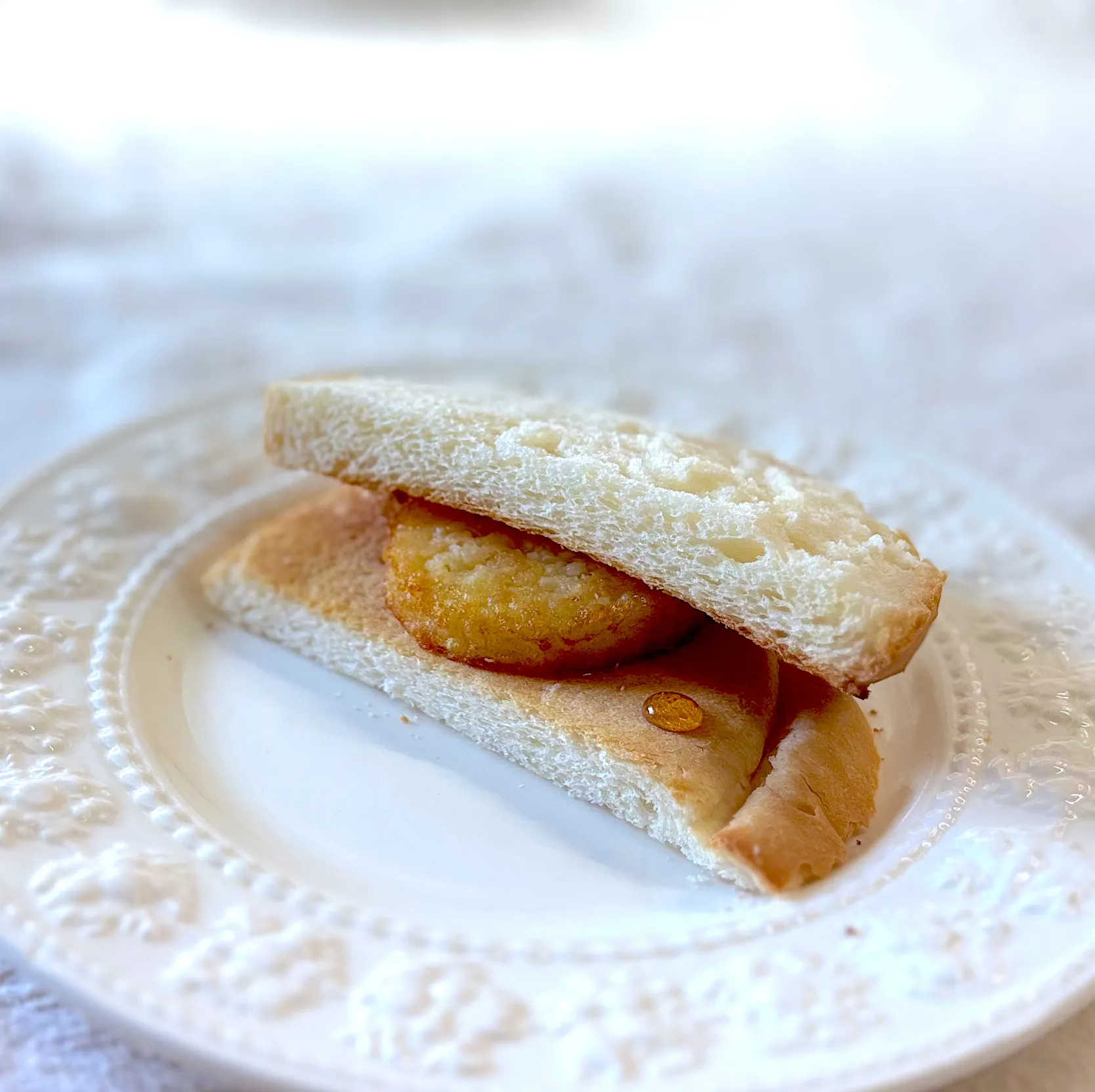 ハッシュドポテトを焼いてトーストにのせてメープルシロップをかけました。 #かっちゃん杉 #クックパッドアンバサダー2023かっちゃん杉 #かっちゃん杉の朝ごはん #かっちゃん杉のトースト #かっちゃん杉のサンドイッチ #ハッシュドポテトサンド