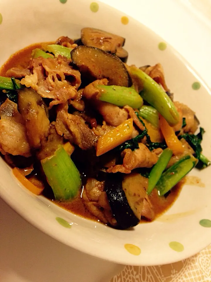 茄子と青梗菜、豚肉の味噌炒め