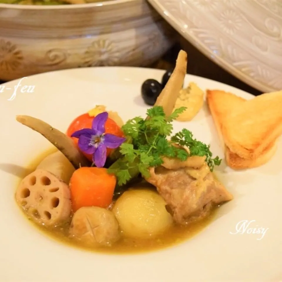 ポトフは、トーストに西洋マスタードをたっぷりつけて、スープに浸して食べるんですよ。