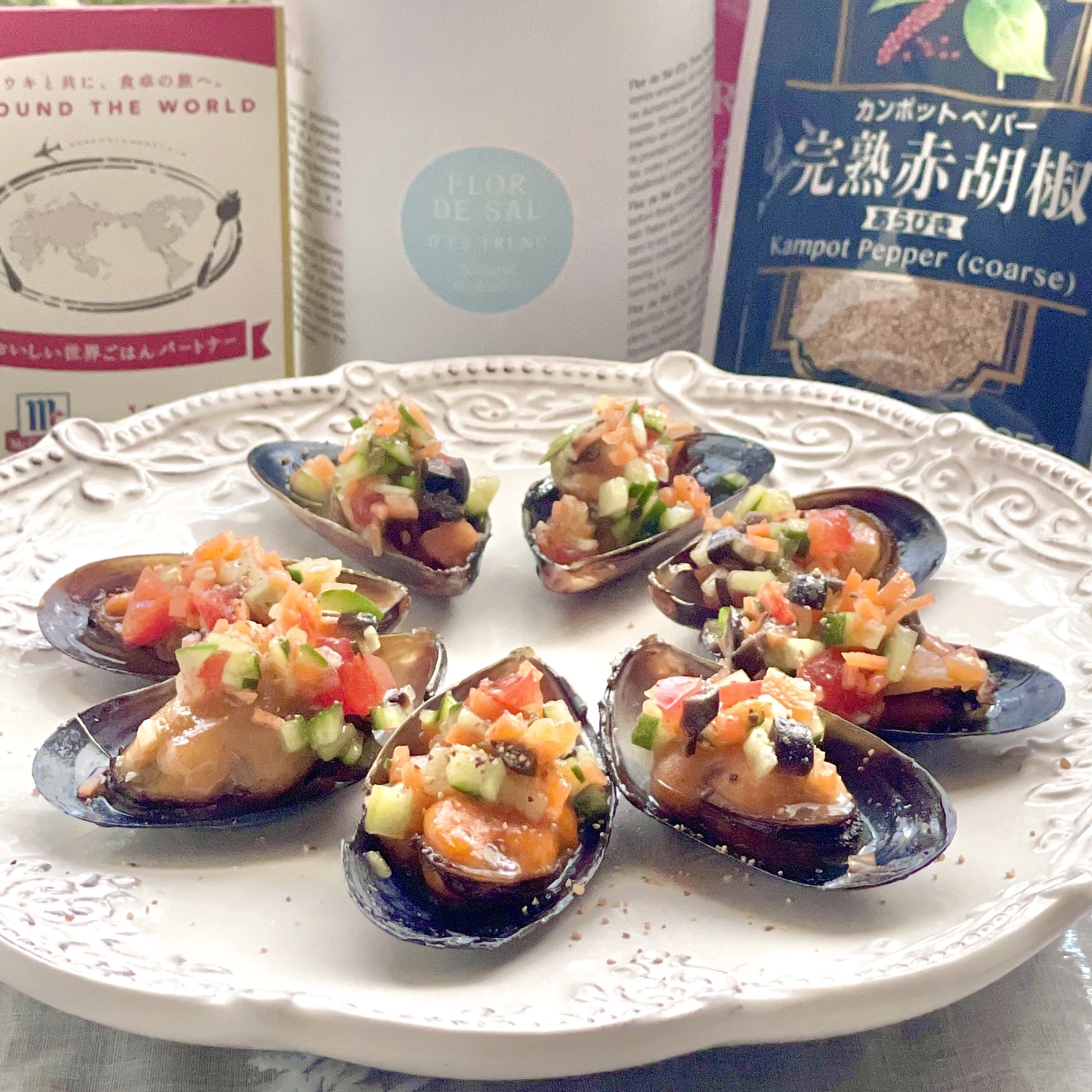 今日はムール貝を使ってエスカベッシュです~仕上げに完熟赤胡椒をパパっとふりかけました☝️