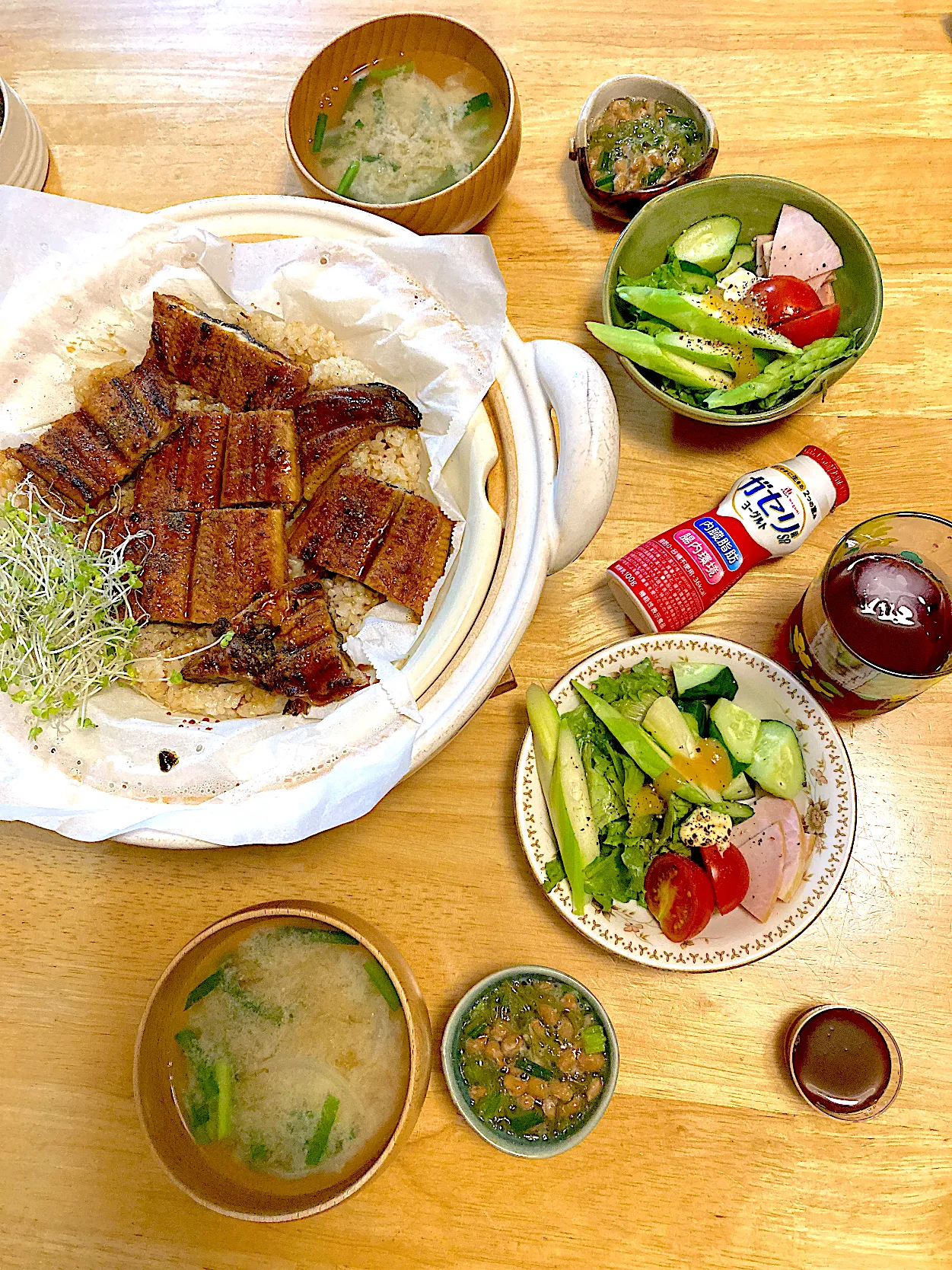戴いて冷凍していた鹿児島鰻を押し麦入り発芽玄米ご飯で。