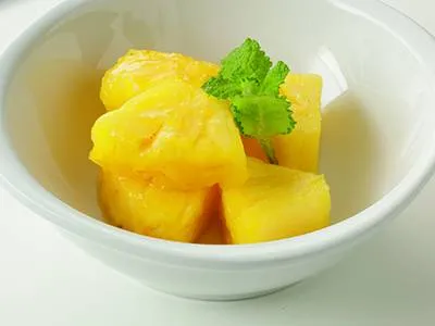 パイナップルをレモン汁と砂糖であえるだけで、爽やかなデザートになります。