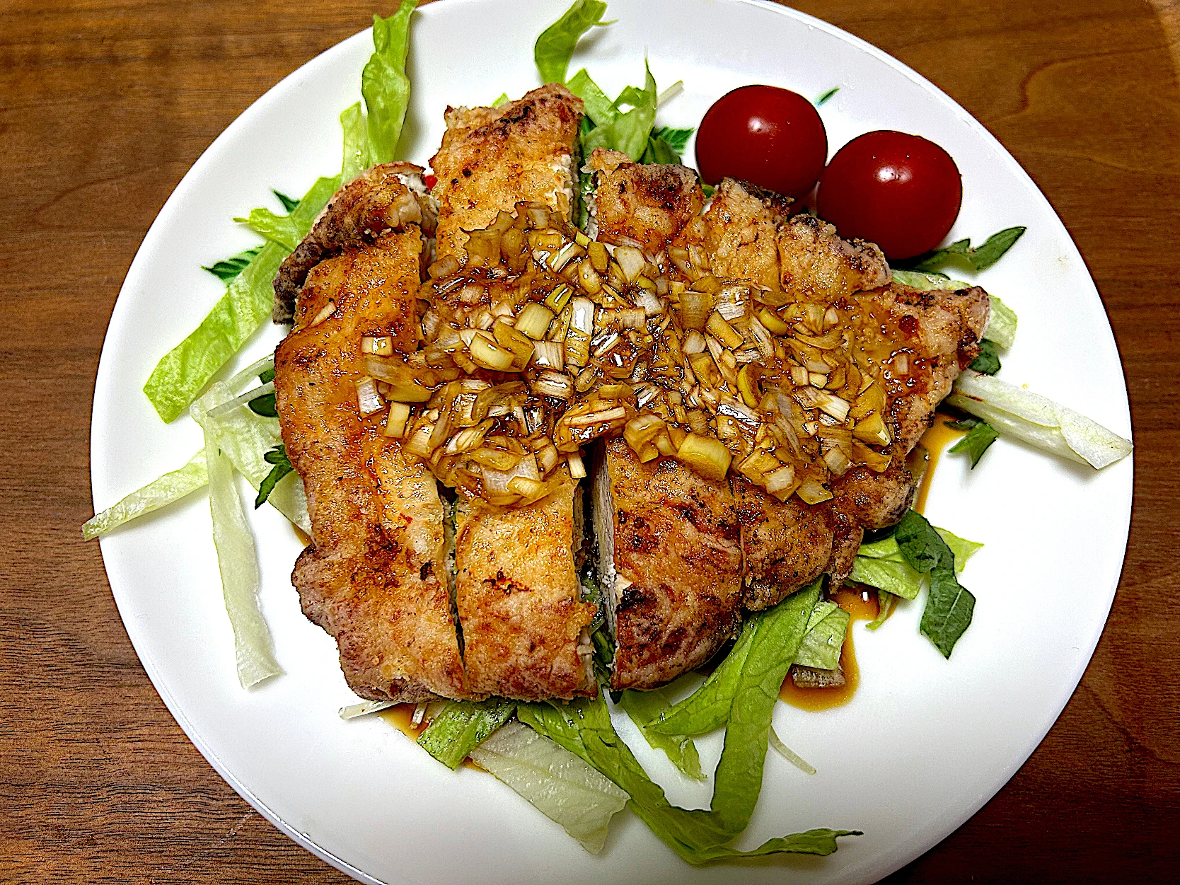 レタス、かいわれ大根、大葉、ミニトマトを添えて。