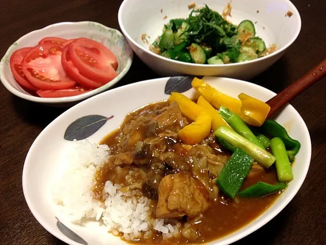 6.20 夏野菜カレー(鶏)、オクラとキュウリの胡麻和え