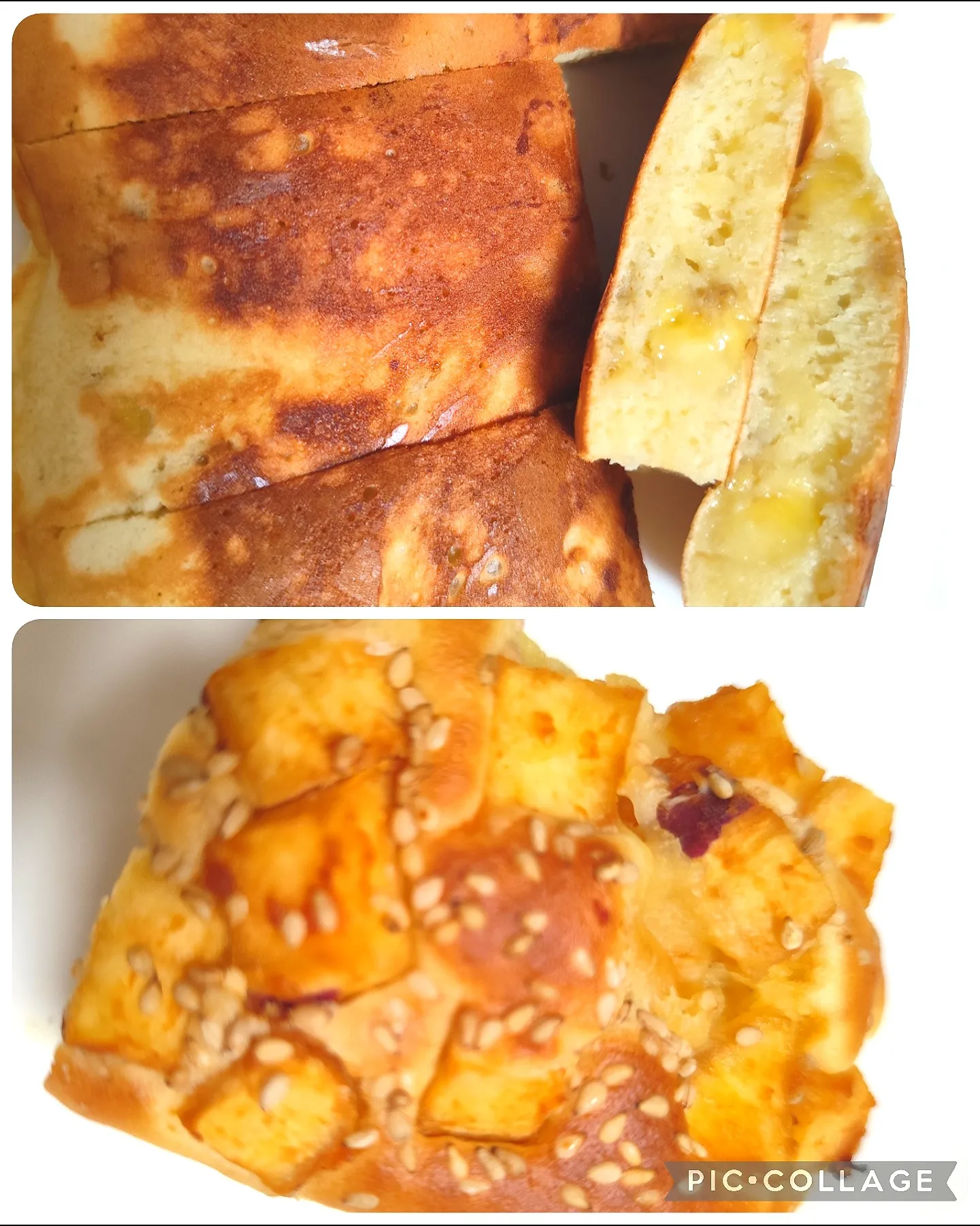 下はさつまいも小一本、小さい角切りにしてレンチン、糀美人熟甘を混ぜて、生地の上にのせ、オーブントースターで焼いたものです。200度から180度、アルミホイルかぶせ。(黒胡麻なくて、白胡麻)