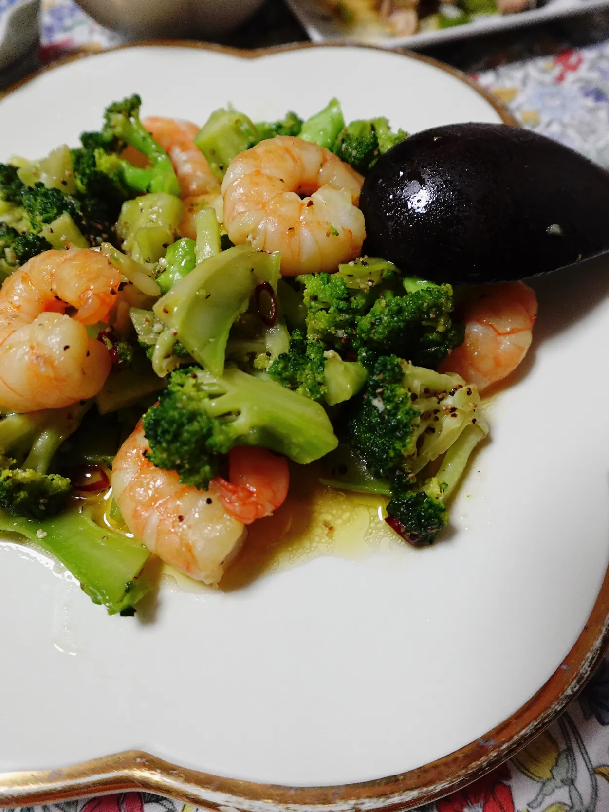 #食べることが幸せ #食べるの大好き #夜ご飯 #簡単 #アヒージョ #えび #ブロッコリー
