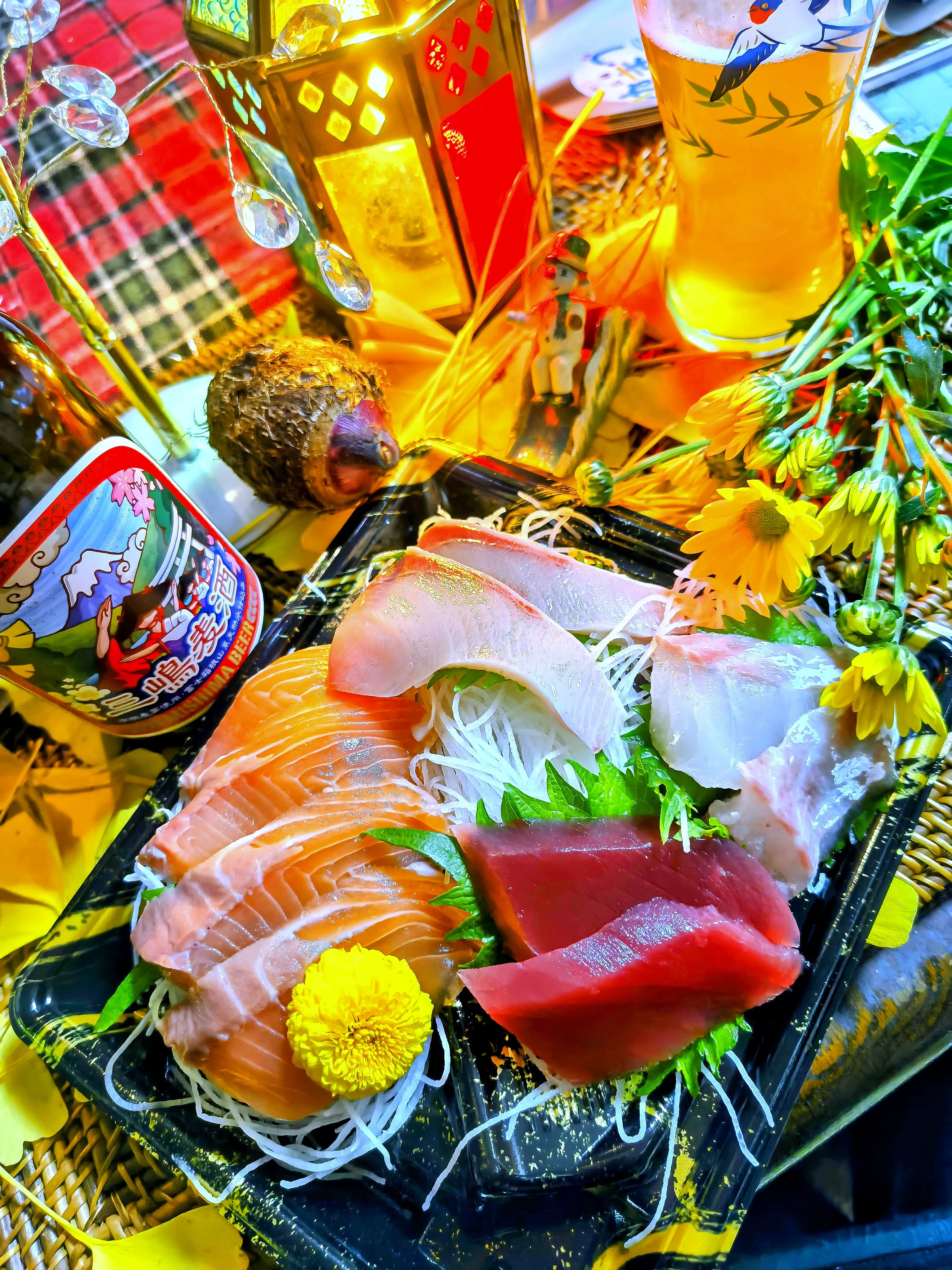 手料理ではなくすいません。次女親子と大銀杏の木を見に行き、夫も孫とサッカースタジアムアウェイ🏟に行っていたのでひとりおびーるとお刺身で夕飯でした。お刺身サイコー