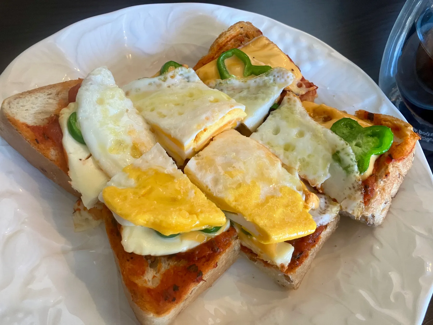 #朝ごはん #自炊 #ピザ #ライ麦パン #ターンオーバー #目玉焼き #残り物
